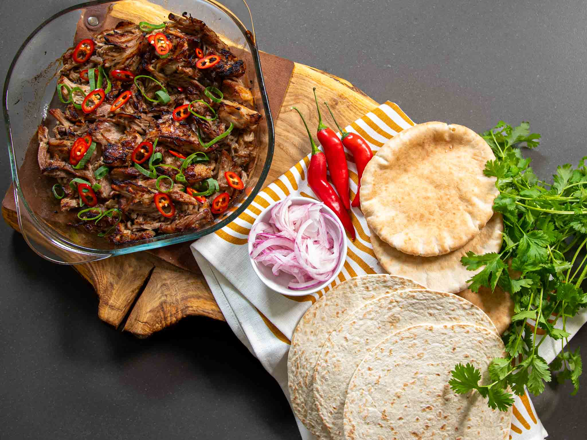 Siirrä possu tarjoilu astiaan ja revi se kahden haarukan avulla säikeiksi. Kaada lientä sekaan ja sekoita. Halutessasi voit vielä karamellisoida pinnan grillivastuksen alla 10minuuttia.