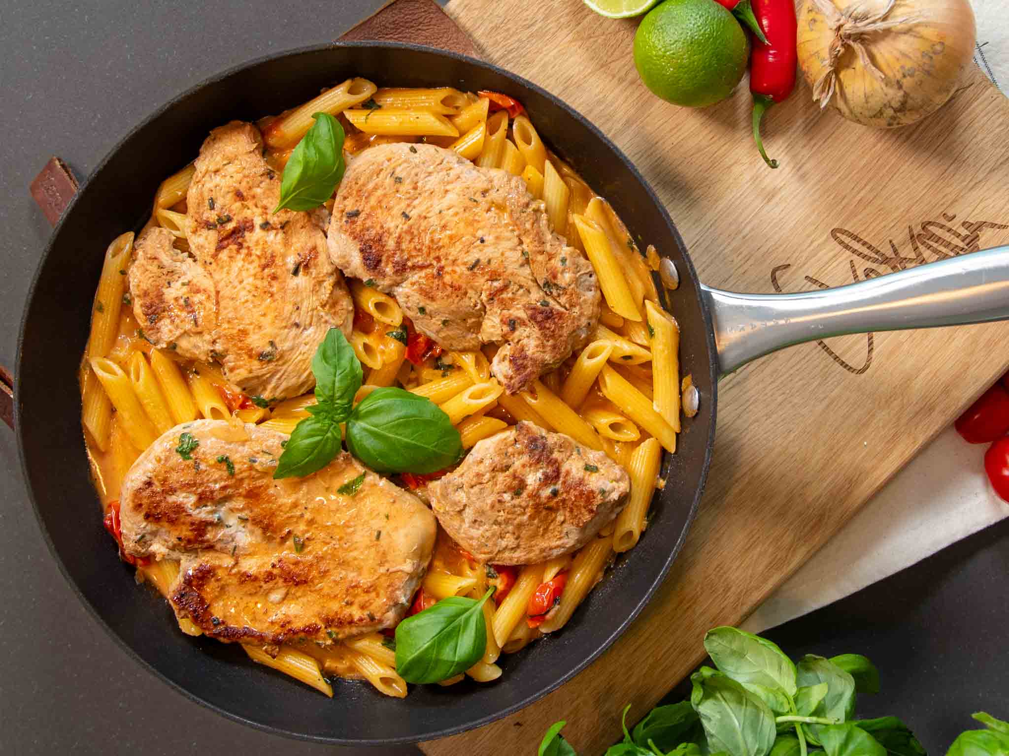 3.Valuta pasta ja keitä loppuun kastikkeessa.