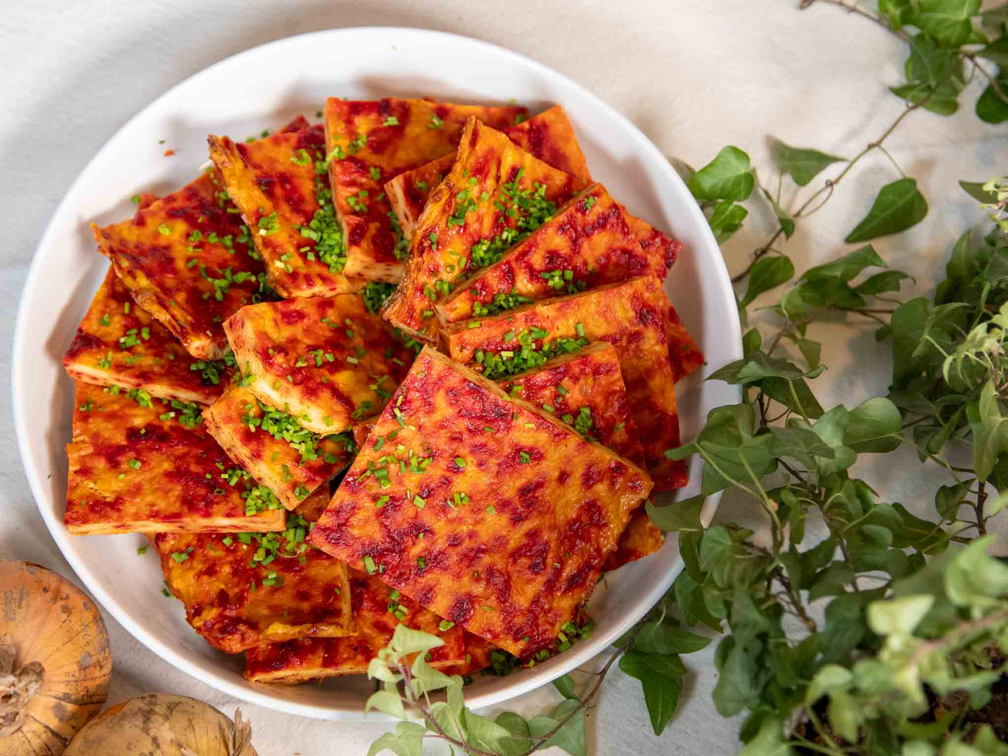 Soolovalkosipuli pilkottuna